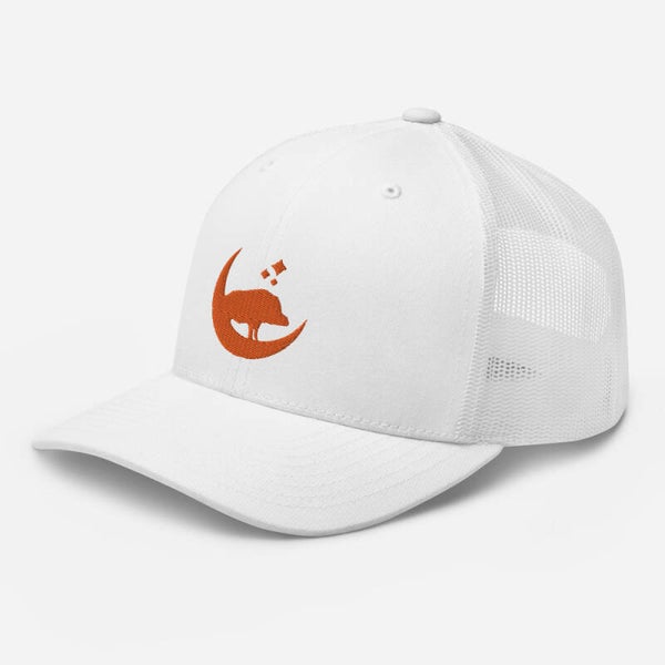MONDSCH(W)EIN Trucker-Kappen haben eine strukturierte Passform mit Netzstoff hinten. Sie wird für alle Gelegenheiten dein neuer Liebling. Das MONDSCH(W)EIN Logo ist in oranger Farbe gestickt.